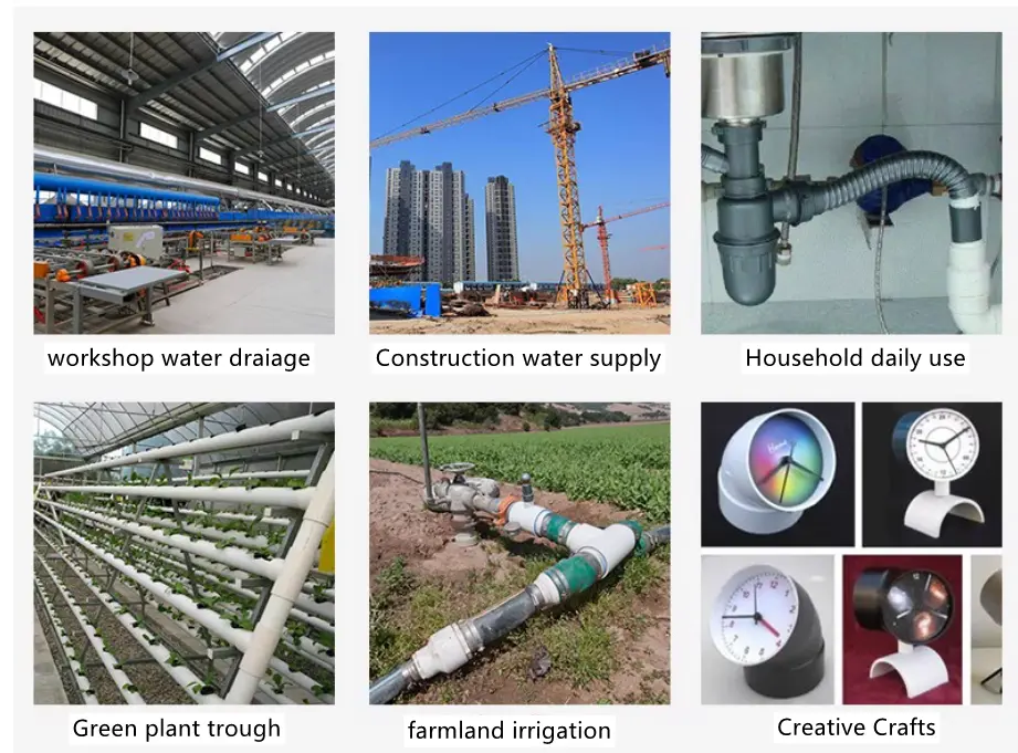 PVC rúrka (Polyvinyl Chloride Pipe) je jedným z najpoužívanejších plastových rúrových materiálov. Yongte poskytuje prispôsobené zariadenia na výrobu PVC rúr rôznych modelov a súvisiace pomocné stroje. Vyrábané PVC rúry majú výhody, ako je nízka cena, vysoká pevnosť, odolnosť proti korózii, spomaľovač horenia, izolácia, ľahká a jednoduchá inštalácia a kompletný rad špecifikácií (priemer DN16-DN3000 mm a tlak 0,6-1,6 MPa), môžu byť široko používané v drenážnych/kanalizačných potrubných systémoch, nízkotlakových systémoch zásobovania vodou, v stavebných potrubiach na odvod dažďovej vody a klimatizácii, v kondenzačných potrubiach budov a klimatizácii. potrubia a potrubné systémy na zavlažovanie poľnohospodárskej pôdy.