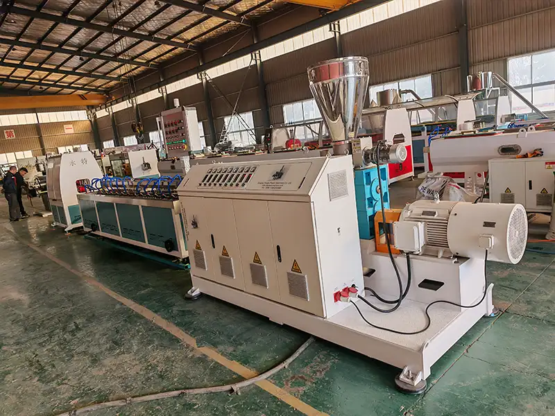 Kompletná linka na výrobu PVC rúr je navrhnutá pre vysokú automatizáciu s automatickým podávaním, reguláciou teploty, rezaním a stohovaním. Okrem toho môžeme dodať automatický systém miešania a dávkovania materiálu na dosiahnutie plne automatizovanej výrobnej linky. S kombinovaným servomotorom a riadiacim systémom naprogramovaným v PLC sú k dispozícii aj možnosti synchronizácie rýchlosti a automatického nastavenia.